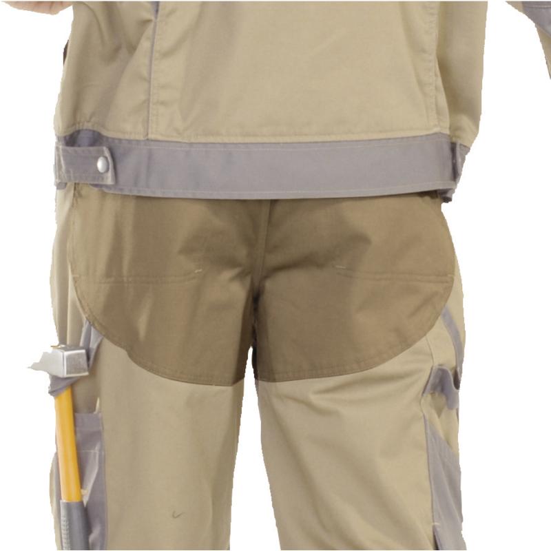 Pantalón. Cintura elástica en los laterales. Rodillas preformadas. 9 bolsillos, incluye 1 para metro.