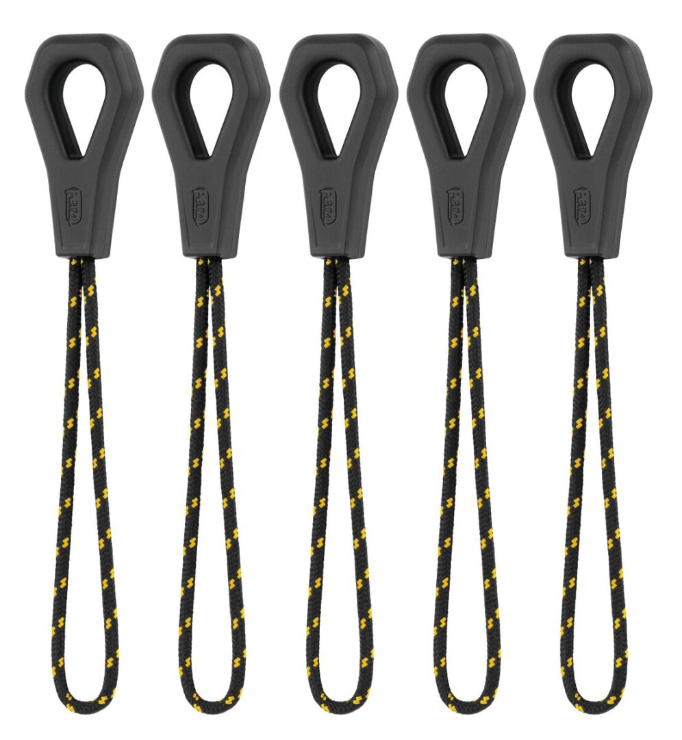 – Conexión mediante nudo de alondra a través de un orificio cautivo. - Punto de conexión ergonómico que permite un mosquetoneo y desmosquetoneo rápidos del mosquetón de la cinta extensible TOOLEASH.